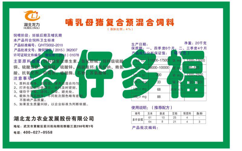 湖北龍力農(nóng)業(yè)發(fā)展股份有限公司坐落于武漢市黃陂區(qū)前川街向陽(yáng)街群順三里298號(hào)附1號(hào)。公司成立于2014年6月,公司自成立以來(lái)把“創(chuàng)全球最大養(yǎng)豬綜合服務(wù)”為企業(yè)愿景。致力于打造教保料品牌”作為公司發(fā)展的明確目標(biāo)。公司一直致力于豬營(yíng)養(yǎng)的研究和開發(fā),積極與國(guó)內(nèi)外高校和科研機(jī)構(gòu)合作,推廣養(yǎng)豬技術(shù)、動(dòng)物營(yíng)養(yǎng)新概念,向世界農(nóng)牧企業(yè)學(xué)習(xí)與合作。公司采用國(guó)內(nèi)先進(jìn)的生產(chǎn)工藝,選擇高精度電子配料秤,高均勻度、無(wú)殘留混合機(jī)等先進(jìn)設(shè)備....